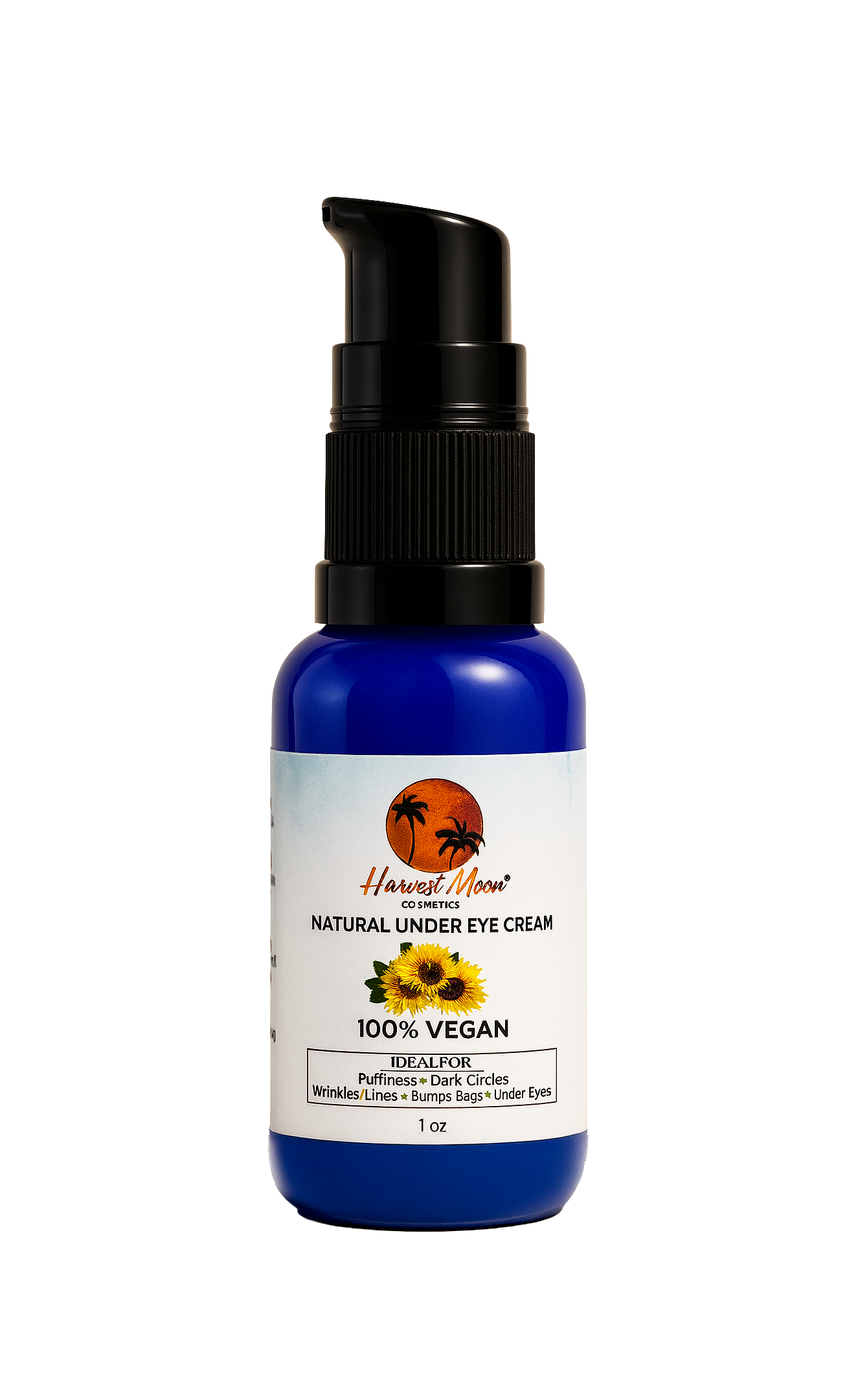 Harvest Moon Cosmetics ®skin care natural under-eye cream – Now four times as big, the retired 1-ounce glass bottle ( save with 20% off ) with a pump has arrived! We have waited a year for this to be back in stock! This lotion is absolutely amazing, so get it while it is in stock. We sell out fast, and it is made in India. It is a long process to make and receive. And you will not find anything like it, not to mention anything that works like it. Furthermore, a small amount goes a long way.